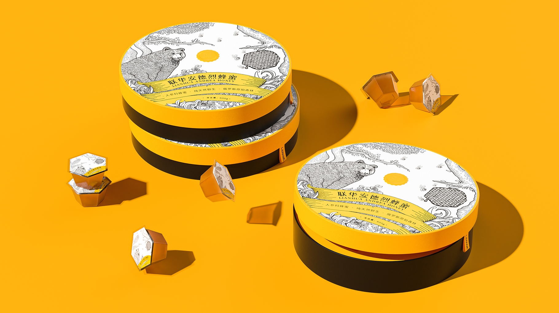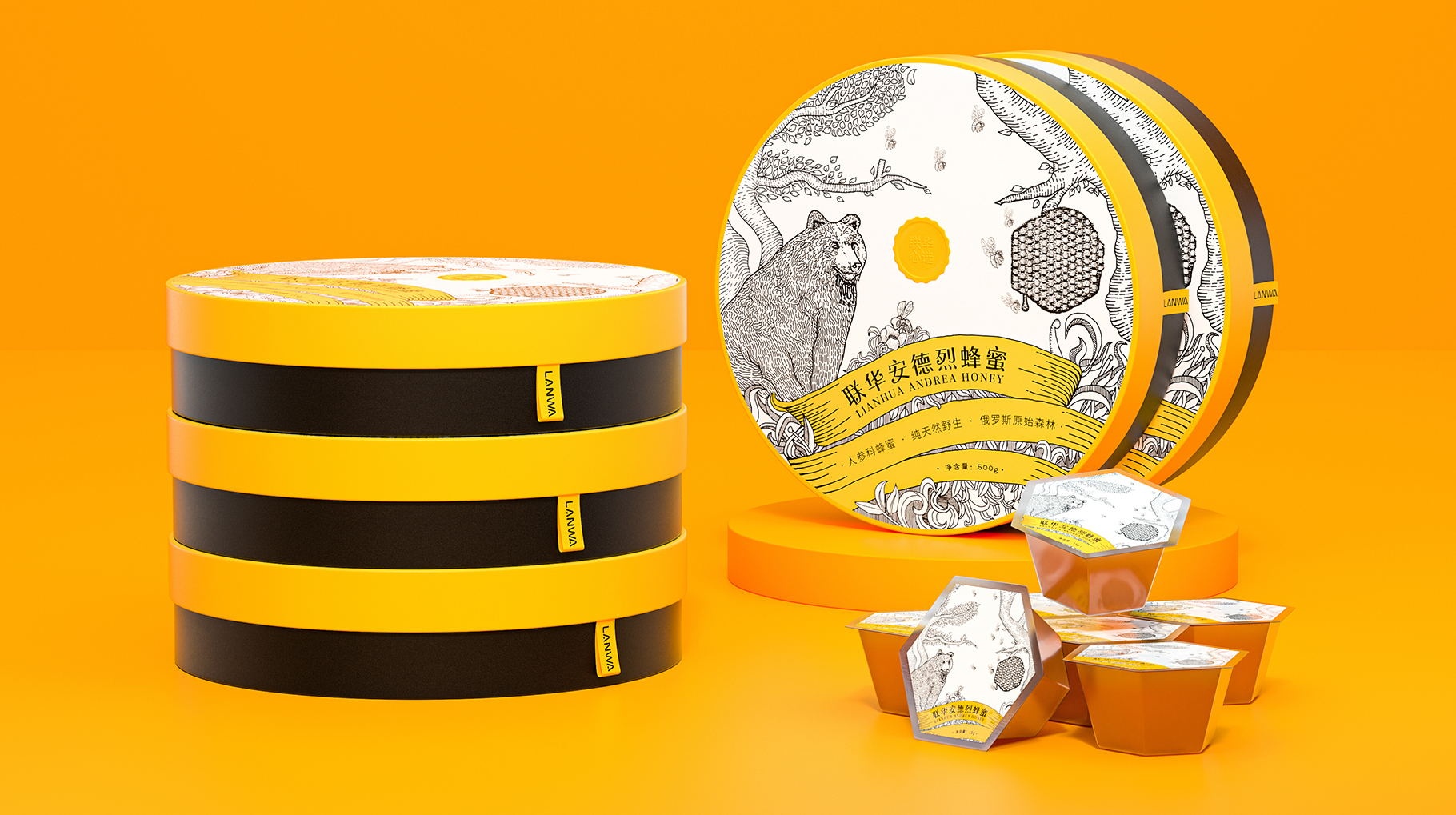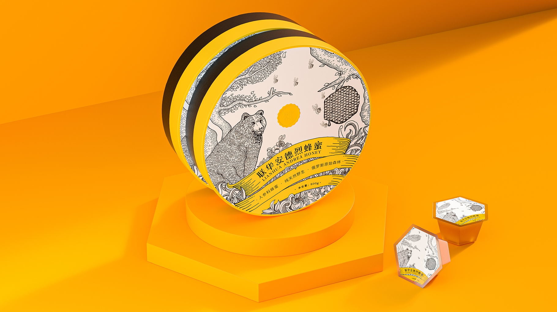 黑色與黃色的搭配,將蜂蜜的產品行業屬性最大化的呈現,讓人一眼就識別產品的行業屬性,具有強烈的視覺沖擊力。