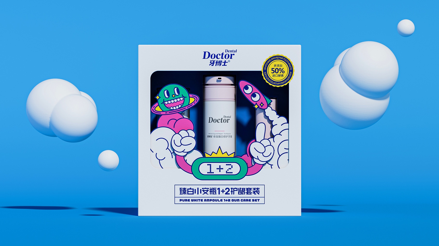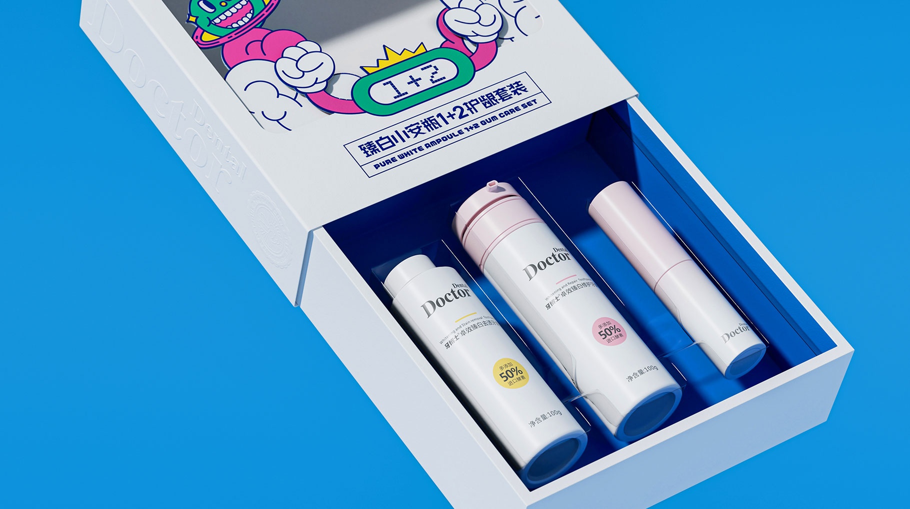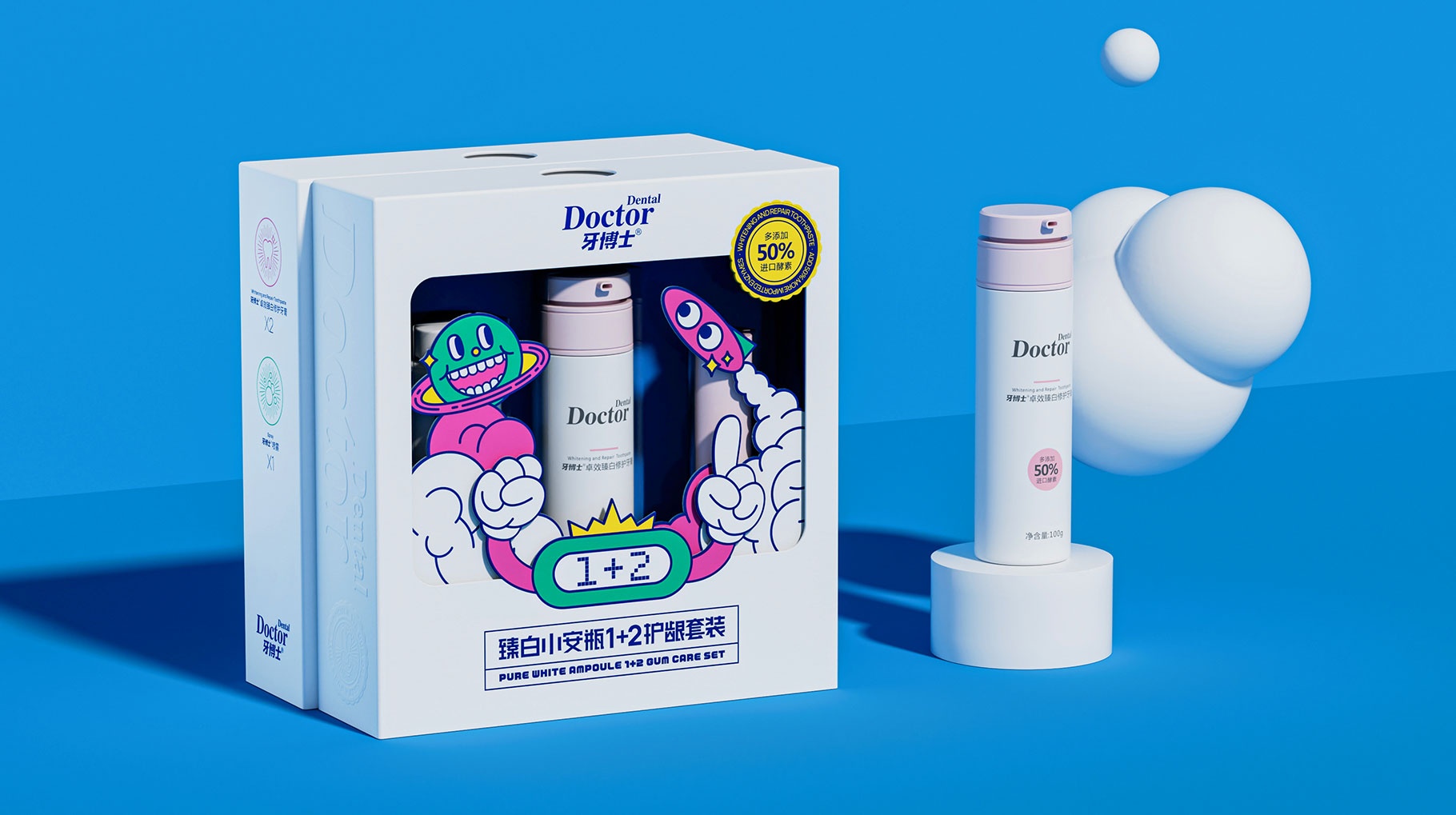 牙博士臻白兒童護齒牙膏套裝產品包裝設計